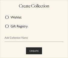 They are groups of saved items that you can organise and share. You can create two types of collections; a Wishlist and a Gift Registry. Gift registries allow others to see the items you've saved, and buy them as gifts for you, typically for a specific occasions like a wedding, baby shower, or anniversary